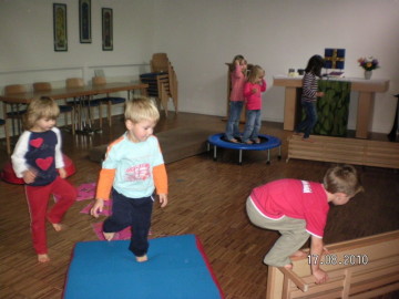 haben die Möglichkeit, ihre Fähigkeiten in der Gruppe, im Gemeindesaal, auf dem Außengelände und im Park zu erproben.